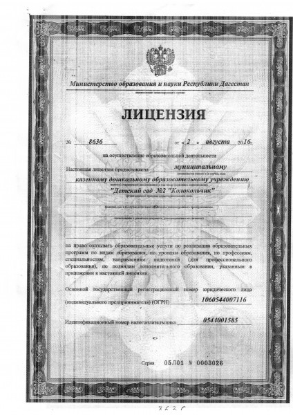 | Полное наименование образовательной организации* | Муниципальное казённое дошкольное образовательное учреждение "Детский сад № 2 Колокольчик" |