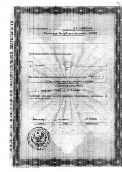 | Адрес местонахождения образовательной организации* | 368000, Республика Дагестан, г. Хасавюрт, ул. Южная, д. 4 |
