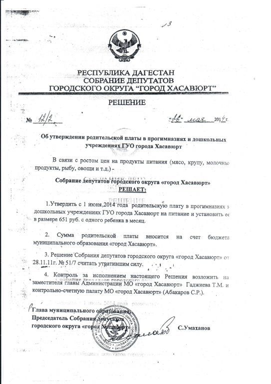 Документ об установлении размера платы, взимаемой с родителей (законных представителей)